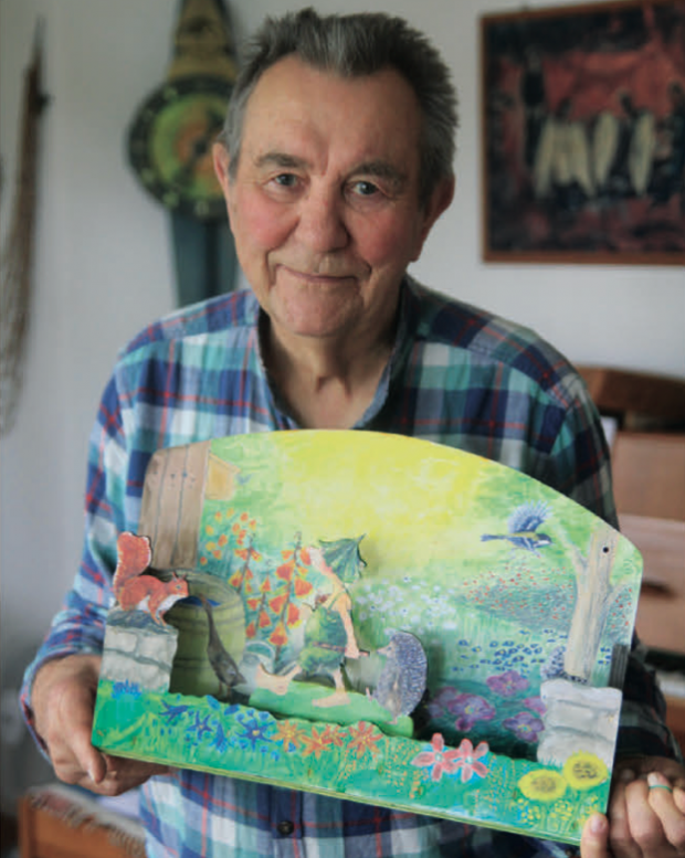 Dörtes Bilder waren ja noch zugänglich. Ich fertigte Kopien davon an und konnte damit ihre Modelle weiterhin bauen. - Im Lauf der Jahre kamen neue Bilder hinzu; teils von Heike Hofmann, teils von mir. Wir wählten unsere Motive zum Teil in Anlehnung an bekannte Kinderbücher, während Dörte ihre Bilder ganz frei von Vorbildern gestaltet hatte; immer geheimnisvoll, mit vielen versteckten Einzelheiten, mit vielen Tieren, Gnomen, Elfen …